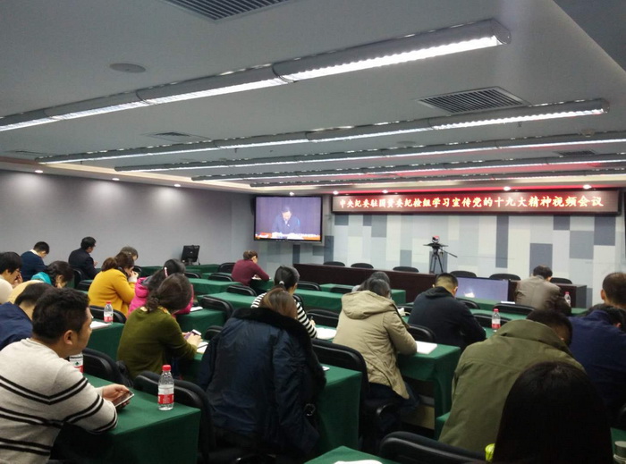 11月10日,中建设计集团直营总部组织参加中纪委驻国资委纪检组召开的学习贯彻党的十九大精神视频报告会。中纪委驻国资委纪检组副组长李正义主持报告会,并传达了中共中央政治局常委、中央纪委书记赵乐际在十九届中央纪委常委会第一次会议上的讲话。中纪委驻国资委纪检组组长江金权作了党的十九大精神宣讲报告。直营总部党委副书记、纪委书记、监事王莹及其他领导班子成员、总部职能部门负责人,二级单位领导班子成员、纪检监察员等共计80余人在20余个视频分会场参加了会议。