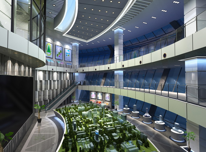 “空间、材质、展示”三者有机结合,经过精心的展示设计和装修,这些主题展区一个个有序完整的结合起来,浑然一体,将园区全貌完整地展现给每个参观者。